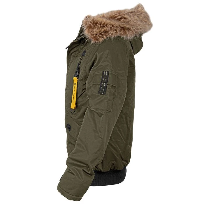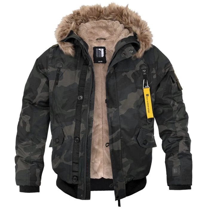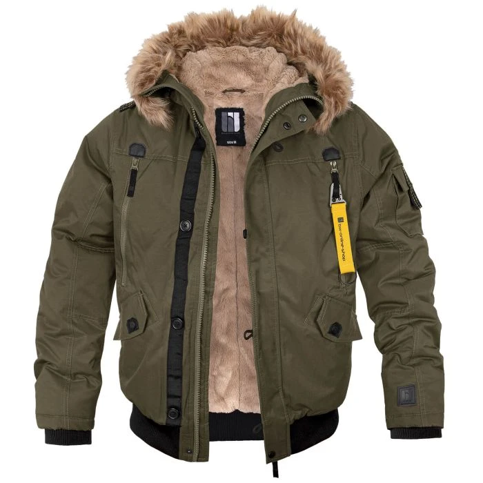 Mit der Aircraft Bomberjacke von bw-online-shop bist du in der kühlen Jahreszeit nicht nur schick angezogen, sondern auch besten vor Kälte und Wind geschützt! Die bequeme Winterjacke mit super kuscheligem Teddyfell-Futter lässt in Sachen Komfort keine Wünsche offen. Elastische Rippstrickbündchen an Bund- und Ärmelabschlüssen, eine doppelte Windschutzleiste sowie der hochschließende Frontreißverschluss verhindern zuverlässig das Eindringen kalter Luft. Zahlreiche Taschen bieten dir ordentlich Platz für Smartphone, Schlüssel, Geldbörse und alles, was du unterwegs so brauchst. Besonders praktisch ist der abnehmbare Kunstfell-Kragen, durch den du den Look der Jacke im Handumdrehen anpassen kannst.