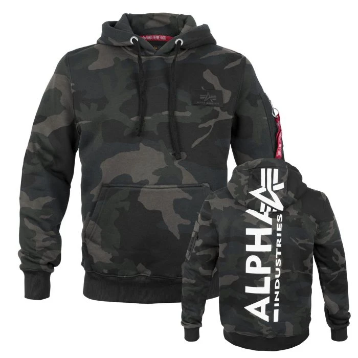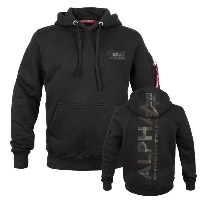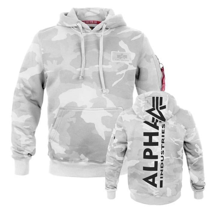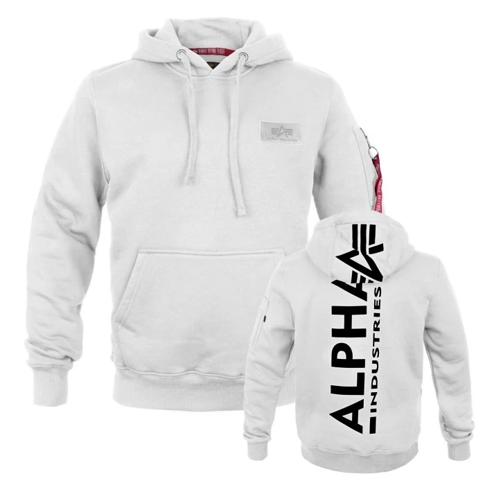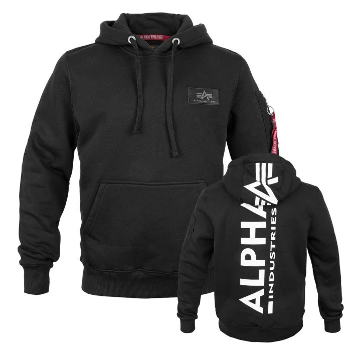 Der Back Print Hoody von Alpha Industries sieht aus wie ein schlichtes Basic, hat es aber in sich! Vorne ist der Pullover schlicht gehalten und lediglich mit einem dezenten Logopatch auf der Brust versehen. Die Rückansicht ziert hingegen ein großer Alpha Industries Print auf dem Rücken sowie ein Logoprint auf der Kapuze. Das Armbüro mit Stiftehalter und der rote Anhänger mit der Aufschrift „Remove Before Flight“ sind ein echter Hingucker und runden das Design ab. Für optimale Passform und angenehmen Tragekomfort sorgen Rippstrickbündchen an Bund und Ärmelabschlüssen sowie das weich angeraute Material auf der Innenseite des Pullovers. Egal ob sportlich oder lässig zur Jeans, der Hoody macht immer eine gute Figur.