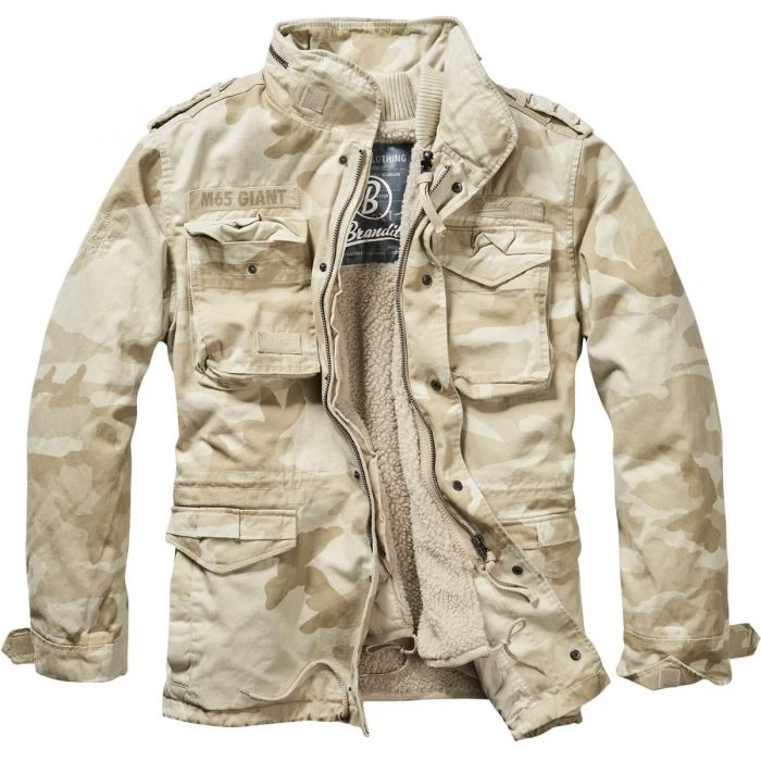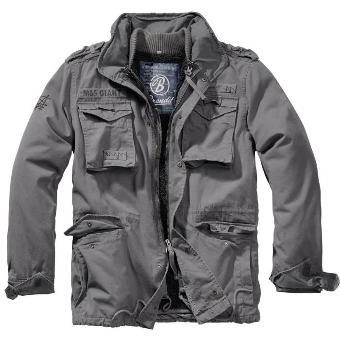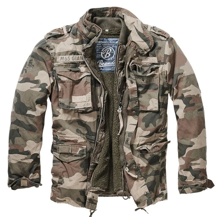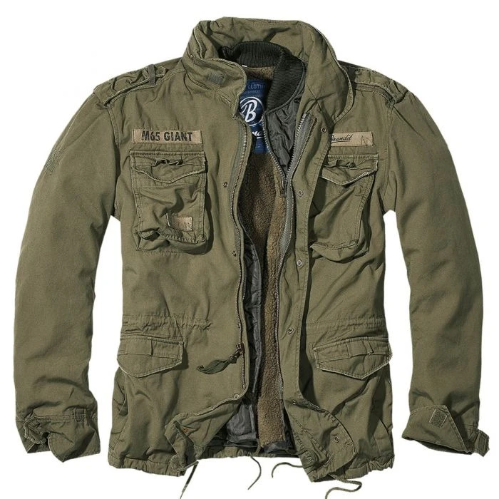 Die M65 Army Jacke im Vintagestil hat inzwischen echten Kultcharacter! Ideal für den Winter durch die mit einem Reißverschluss austrennbare gesteppte Innenjacke aus Nylon und warmen Teddy-Innenfutter. Die Außenjacke ist aus hochwertiger, gewaschener Baumwolle und kann ohne Futter auch als Übergangsjacke im Frühjahr und Herbst getragen werden. Typisch M65 hat auch die Giant zwei große Brusttaschen, zwei geräumige Pattentaschen vorne sowie eine versteckte Baumwollkapuze mit Kordelzug und Schulterriegel mit Druckknopf. Viele Applikationen, wie z.B. das Army-Ranking-Symbol am linken Arm oder die Brustpatches geben dieser Jacke den richtigen Look.