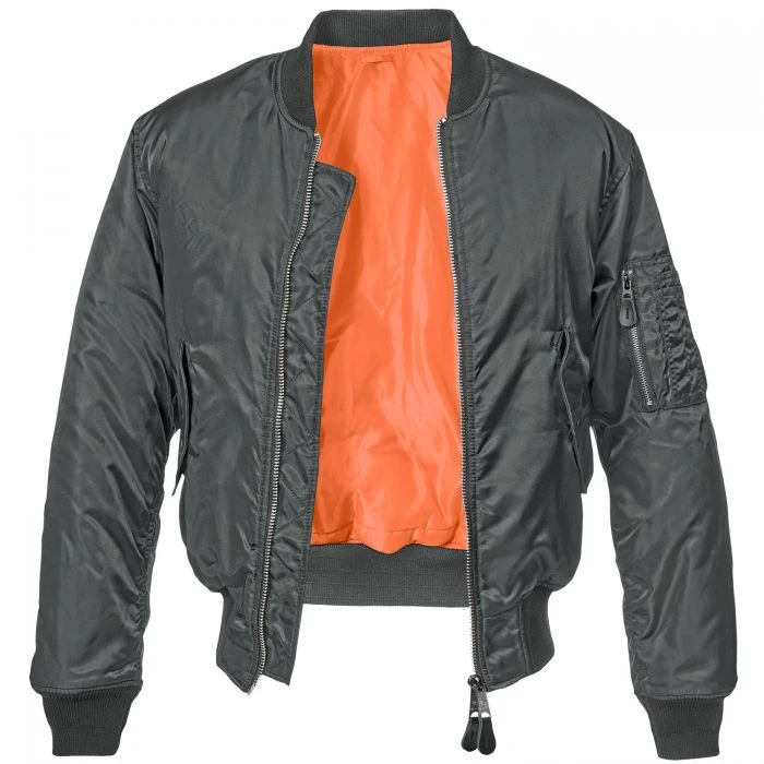 Mit dieser klassischen Pilotenjacke sind modische Höhenflüge vorprogrammiert. Zeitlos und zugleich angesagt, passt sich das Blouson perfekt jedem Look an, egal ob sportlich oder elegant. Ausgestattet mit strapazierfähigem, hochwertigen Nylonmaterial, welches sowohl wind- als auch wasserabweisend ist. Außerdem besitzt die Jacke zwei seitliche Schubtaschen mit Patte, eine Oberarmtasche mit Reißverschluss und Armbüro sowie Strickbund an Kragen, Ärmeln und Saum. Das typische Highlight dieser Jacke ist das kontraststarke, orangene Innenfutter.