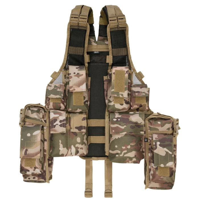 Diese taktische Allroundweste mit unzähligen Taschen ist perfekt für den Einsatz geeignet. Die Weste verfügt über gepolsterte, längenverstellbare Schultergurte sowie Hüft- und Rückenpolsterung mit unterlegtem Netz. Die Taillenweite rechts und links ist über jeweils 4 Riemen einstellbar. Zur Anbringung von Namensstreifen, Abzeichen oder anderen Patches sind mehrere Klettflächen vorhanden. Alles in allem eine praktische Weste mit ausreichend Stauraum für alles Wichtige.