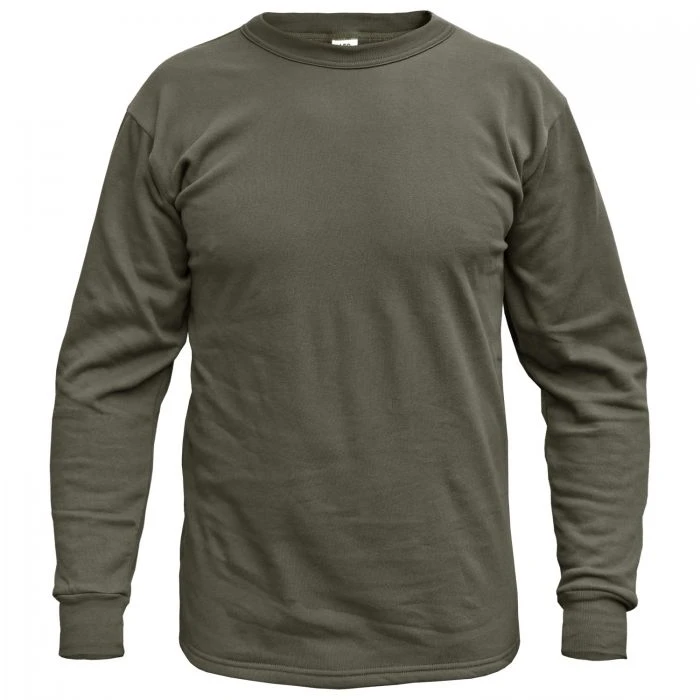 Qualität aus dem Hause Leo Köhler. Das BW Plüsch Unterhemd, gefertigt nach Bundeswehr TL besitzt dank der hochwertigen Baumwollqualität und dem weich angerauten Inneren eine hohe Wärmeisolation und bietet dabei besten Tragekomfort. Vorteil des Baumwollmaterials ist zudem der gute Feuchtigkeitstransport was dementsprechend für ein optimales Trageklima sorgt. Das langärmelige Unterhemd ist lang geschnitten und schützt somit auch den Nieren- und Beckenbereich sowie den oberen Gesäßbereich vor Auskühlung. Halsausschnitt und Ärmelabschlüsse aus elastischem Feinripp liegen gut am Körper an und verhindern einen Wärmeverlust. Doppelnähte sorgen für Stabilität und Langlebigkeit. Das Bundeswehr Plüsch Unterhemd ist nicht nur im Einsatz und bei Übungen sehr beliebt, sondern erfreut sich auch in den Bereichen, Beruf, Hobby und Freizeit wachsender Beliebtheit.