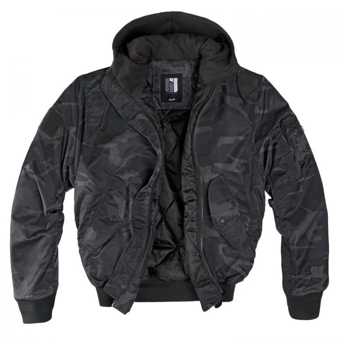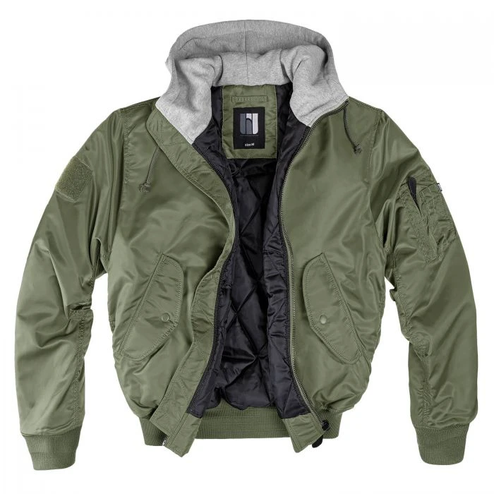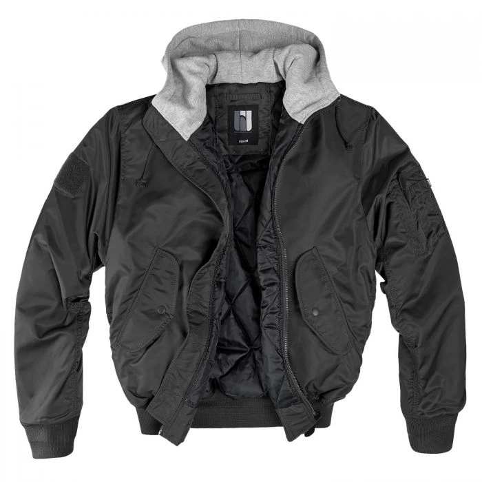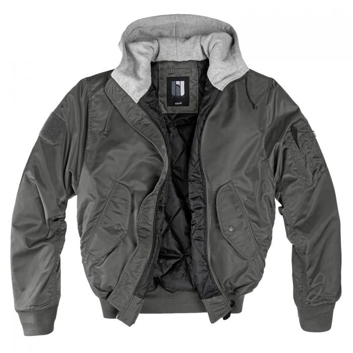 – klassische Fliegerjacke mit Sweat-Kapuzeneinsatz