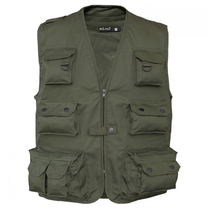 Ein absolutes Allround-Talent für Freizeit und Beruf, stellt diese Weste dar. Egal ob für die Jagd oder den Angler, bietet sie mit seinen 14 Innen- und Außentaschen genügend Platz für nützliche Utensilien. Verschließbar sind diese Taschen z.T. mit Druckknöpfen oder Reißverschlüssen, damit nichts verloren geht. Außerdem Einhakösen zum Anbringen von Ausrüstungsgegenständen, stabile Tuchschlaufe für Kescher, Schulterklappen und auf dem Rücken befindet sich eine große Stautasche mit seitlichem Eingriff. Verschließbar ist die Weste mit einem Reißverschluss und zusätzlicher Druckknopfsicherung, sehr hochwertig verarbeitet und nützlich obendrein.