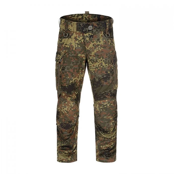Die Raider Mk.IV Einsatzhose von Clawgear ist robust, aber trotzdem leicht und besonders angenehm zu tragen. Der leicht gepolsterte Bund ist mit einem elastischen Zugband versehen, mit welchem die Bundweite optimal eingestellt werden kann und außerdem für die Verwendung von Rigger & Safety Belts sowie Hosenträgern optimiert. Die Cargotaschen verfügen über ein von außen zugängliches Fach, in welches beispielsweise ein 30-Schuss Magazin griffbereit verstaut werden kann. Ein besonderes Highlight der Hose ist der Kniebereich: Dank des innenliegenden Systems ist die Kniehöhe höhenverstellbar, das modulare Einschubfach bietet die Möglichkeit Knieschoner zu verwenden und die Innenseite ist mit einem feuchtigkeitsabsorbierenden Stoff versehen. Die Hose bietet die notwendige Robustheit und NIR Tauglichkeit, um auch unter widrigen Einsatzbedingungen bestehen zu können. Es wurden ausschließlich YKK Reißverschluss sowie Nähgarn von Amann für die Produktion verwendet. Die Hauptnähte sind im Dreinadelstich genäht und sind dadurch dreifach abgesichert.