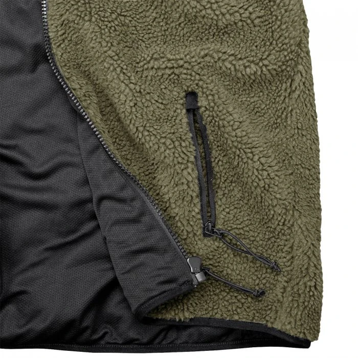 Die Shepard Faserpelz Jacke Hooded ist sowohl im Alltag als auch auf Outdoor-Ausflügen eine gute Wahl. Das hochflorige Fleecematerial sowie das atmungsaktive Innenfutter sorgen für hohe Wärmeleistung und wappnet Dich für die kalte Jahreszeit. Die Jacke ist gerade und bequem geschnitten und der Frontreißverschluss ist mit einem Kinnschutz und einer Windschutzleiste ausgestattet, welche zusätzlich vor Kälte schützt. Um Wertsachen sicher zu verstauen, befinden sich an den Seiten zwei Einschubtaschen mit Reißverschluss sowie eine Tasche mit Klettverschluss im Inneren der Jacke. Die Ärmelabschlüsse und der Hüftbund bestehen aus einem elastischen Material und passen sich der Körperform optimal an.