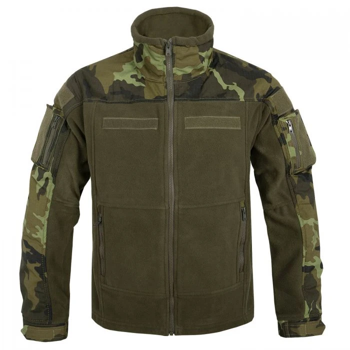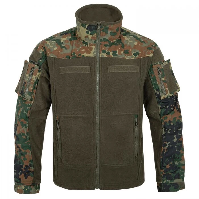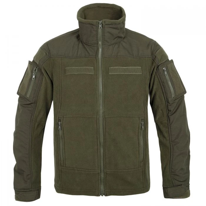 Die Tactical Fleecejacke Combat Ripstop von MFH bietet dir mit ihrem kurzen Schnitt beste Bewegungsfreiheit bei deinen Aktivitäten. Im Gegensatz zu herkömmlichen Fleecejacken ist hier der Rückenbereich sowie der Großteil der Ärmel mit strapazierfähigem Ripstop-Gewebe verstärkt. So hast du innen den Komfort von weichem, wärmendem Fleece und außen bestens Schutz durch das reißfeste Gewebe. Zwei geräumige Einschubtaschen mit Reißverschluss sowie zwei Ärmeltaschen bieten Platz für Ausrüstungsgegenstände. Insgesamt sieben Klettaufnahmen ermöglichen dir das Anbringen von Patches, Namensstreifen oder Molle-Pouches.