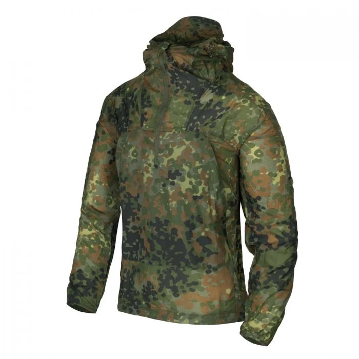 Das Windrunner Windshirt von Helikon-Tex hat ein besonders geringes Gewicht und kann sehr klein zusammengefaltet werden, wodurch er kaum Platz wegnimmt und in jedes Gepäckstück passt. Das Windshirt besteht aus ultraleichtem, dicht gewebtem Nylongewebe und schützt vor Wind. Wenn man es regelmäßig imprägniert, schützt es auch vor leichtem Regen. In den Achselhöhlen befinden sich Mesh-Belüftungslamellen, welche die Luftzirkulation ermöglichen. Eine große Kanaltasche sowie zwei kleine Innentaschen bieten Stauraum für Smartphones oder andere kleine Gegenstände.