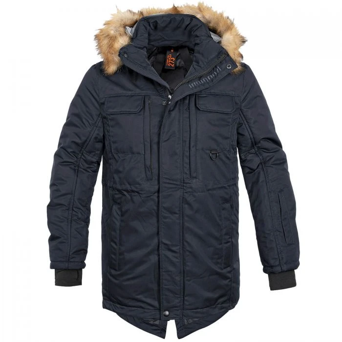 - Kapuze mit abnehmbarer Innenkapuze aus reflektierendem Material sowie abnehmbarem Fellkragen